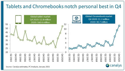 Segundo os dados da Canalys, a pandemia Covid-19 tem sido um excelente motivador para a compra de tablets e portáteis, com os Chromebooks a terem registo um aumento de