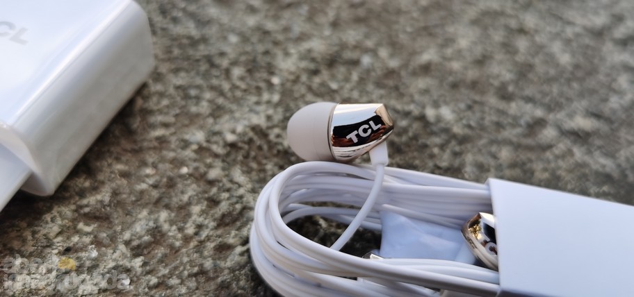 Os auriculares apresentam um acabamento em dourado, com uma inscrição com o nome da marca, o que acaba por dar um toque de algum requinte ao conjunto.