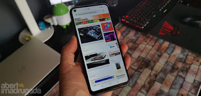 A frente do smartphone é dominada pela simplicidade, com o furo em cima à esquerda a ser o único elemento a destacar-se.